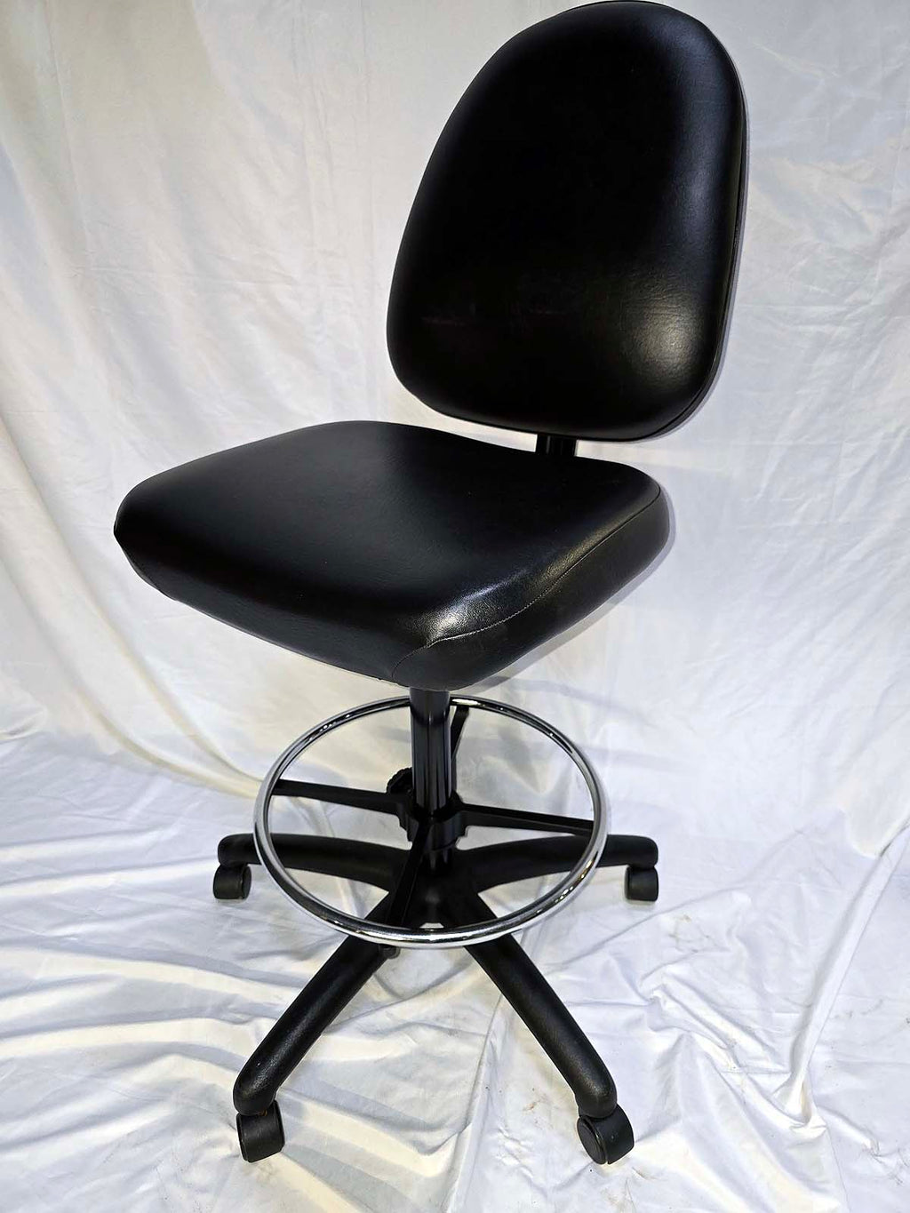 Rolling lab chair | Bench height with vinyl seat and back -- adjustable height (23" to 33") with 1 lever
