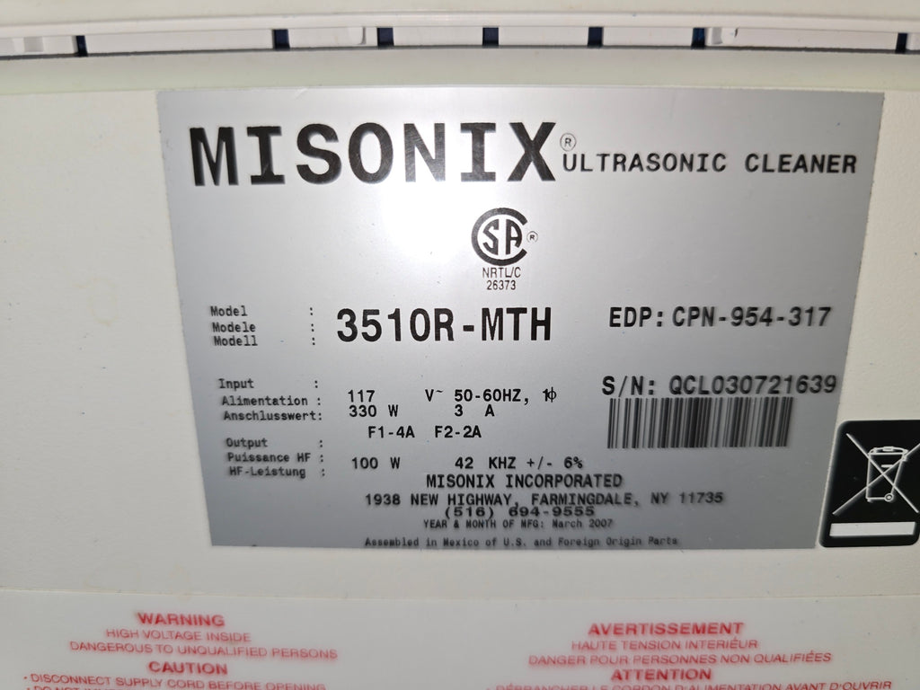 Misonix Model 3510R-MTH ultrasonic cleaner